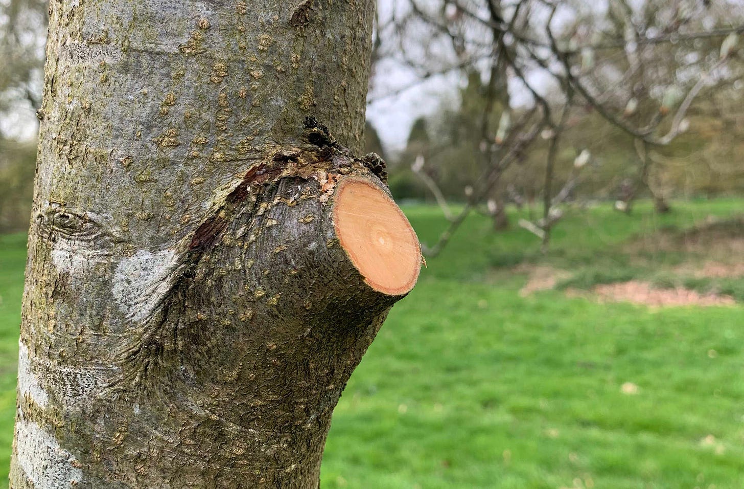With a flush cut the mindset was that you’d cut the branch off completely. You’d be aiming to get the cut flush (translates into “level with” in trade speak) with the trunk. The branch bark ridge comes off, the branch collar comes off. All of it. “Just lop it all off and make it flush mate” was the general idea.