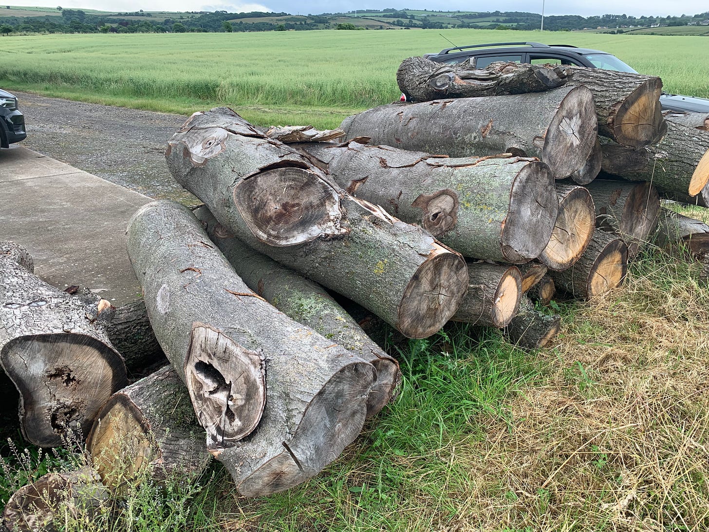 I was at one such RFS event in June of 2023, where I met a some new people. Two of those people were a couple (Hugh and Wei) who lived in Stocksfield, not too far from Treedom Woods. We got talking and the topic of logs came up and they happened to mention that they had a rather large oak log and asked if I’d be interested in it. Whilst they run a firewood business, Hugh didn’t want to see this particular log (and as it turns out – a few others) go to firewood in which the utility of the wood is measured in minutes for the essential, but fairly trivial task of keeping you warm in the winter. Instead, Hugh wanted to ensure the utility of the log was measured in decades, not minutes.