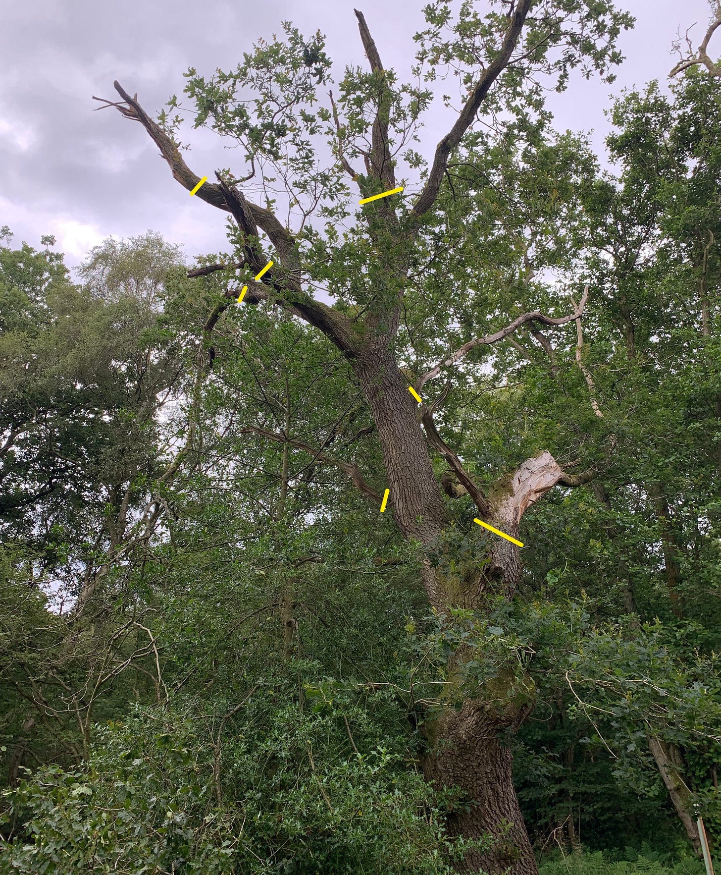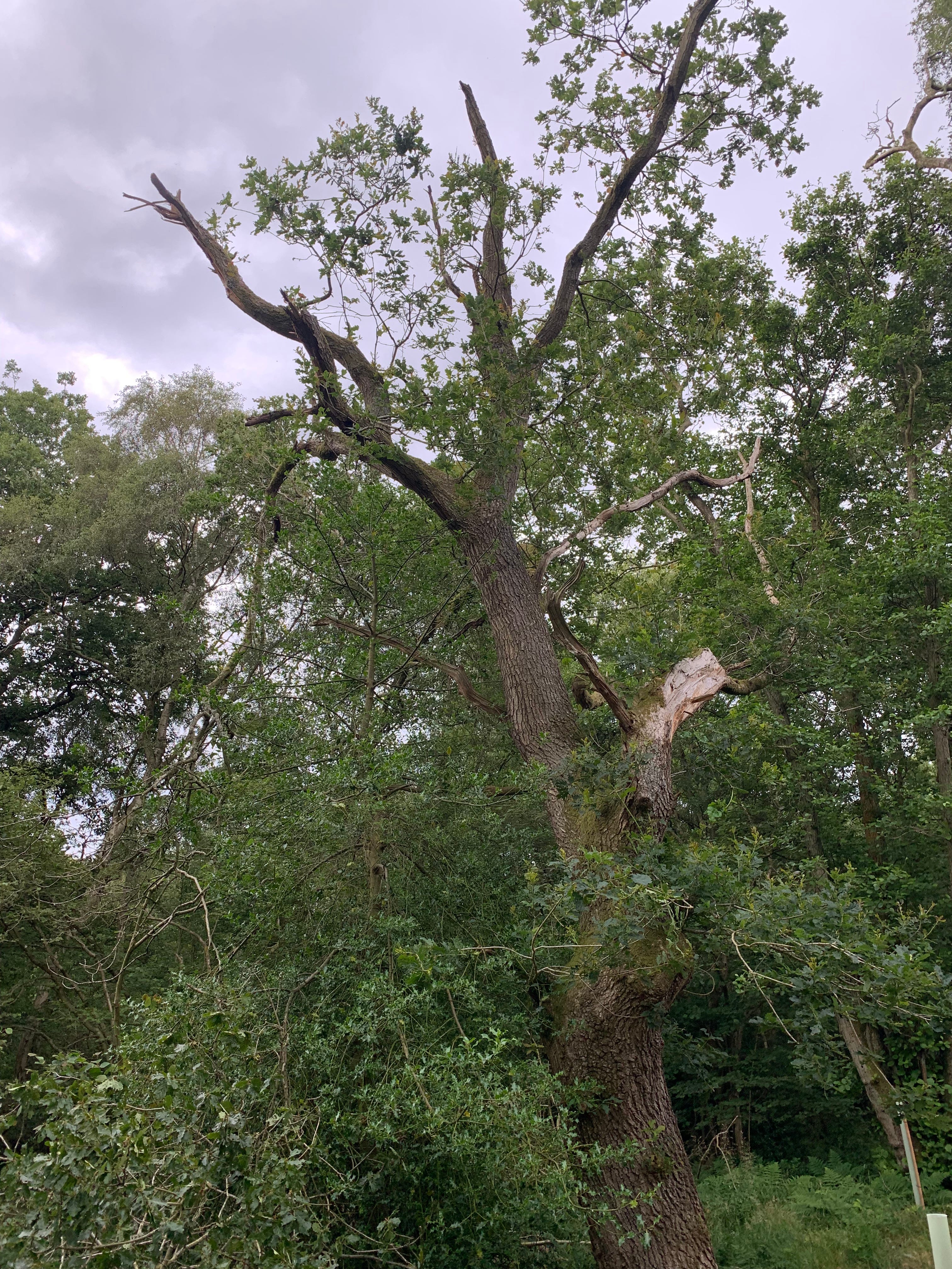 The battered oak - a windfallen birch smashes up an already smashed up oak tree.
